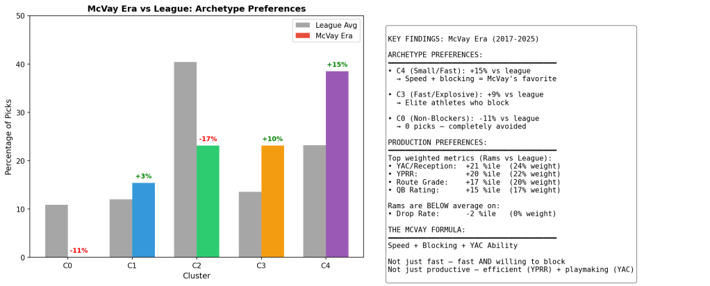 I wanted to understand what’s actually happening. Not the narratives, not the hot takes—the patterns. What makes front offices tick? What do the Rams, specifically, look for when they’re spending draft capital on a player? Could I reverse-engineer their preferences from 12 years of data?